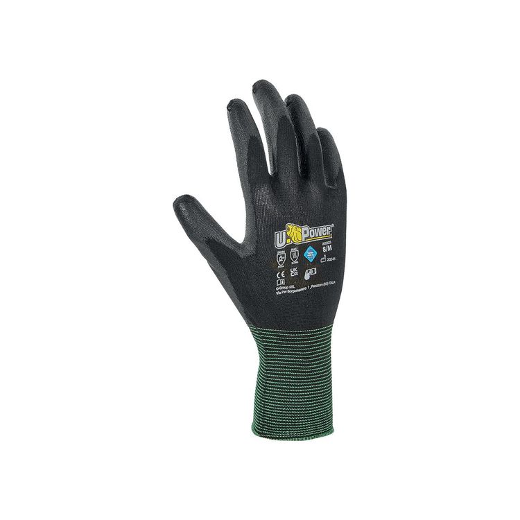 Rivestimento: PU Foam (schiuma di poliuretano) sul palmo, per una presa sicura e una buona resistenza in ambienti asciutti o leggermente umidi .